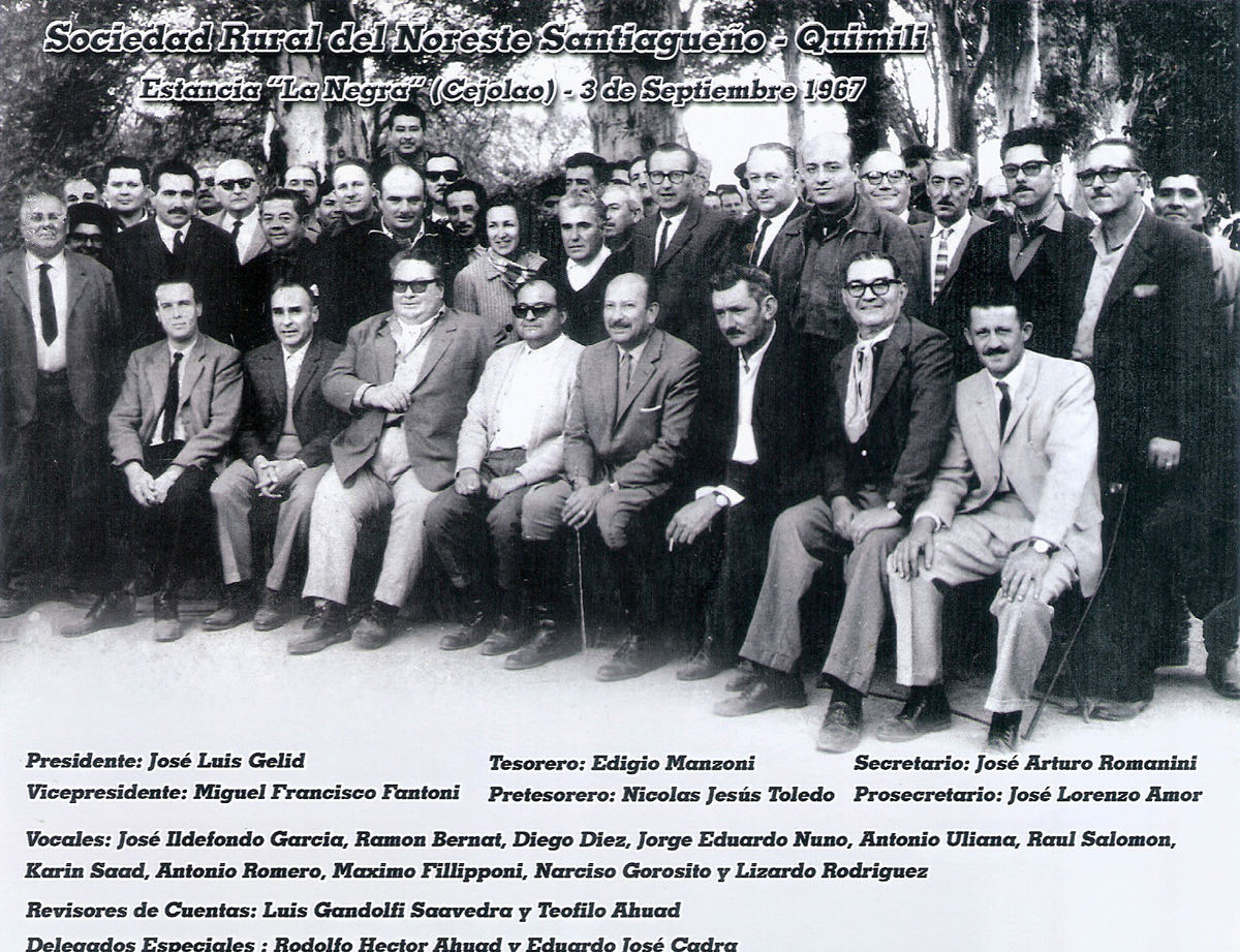 El 3 de Septiembre de 1967, las voluntades de los productores de la zona se unieron para conformar la Sociedad Rural del Noreste Santiagueño, bajo el lema «LA UNION HACE LA FUERZA». El lugar donde se celebró esta primer reunión fué la Estancia La Negra, en el Depto. Moreno, Santiago del Estero, propiedad de Jose L. Gelid.